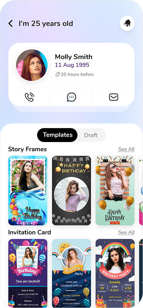 Add the widget to your home screen. Using this widget you can directly wish your friends via WhatsApp, Messenger, SMS or call.